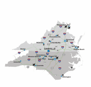 Located in south-central Virginia along the North Carolina border, Danville is within a day’s drive of over 60 percent of the U.S. population and two-thirds of the country’s industrial base. An excellent highway system and easy access to Interstates 40 and 85 make Danville extremely well-suited to reaching mid-Atlantic markets and international shipping facilities.